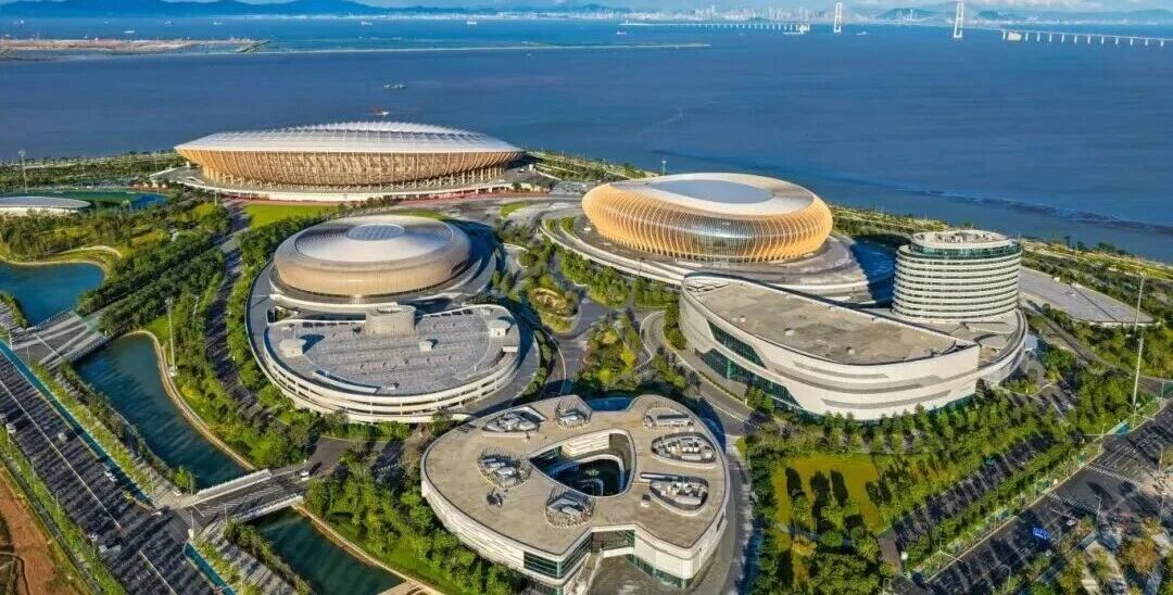 大湾区文化体育中心位于粤港澳大湾区的“几何中心”——广东省广州市南沙区最南端,包含6万座甲级综合体育场、2万座多功能体育馆及4000座游泳跳水馆,是集文化、旅游、体育等功能为一体的大型城市综合体。