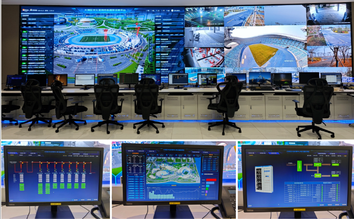 CET中电技术为该项目提供了EEMsys建筑能效管理系统解决方案,配套部署超过1600台的智能终端,方案基于iEEM能效管理软件平台,接入综合保护装置、电表、环境温湿度传感器、母排无线测温装置、直流屏及发电机组等设备数据信息,对甲级综合体育场、多功能体育馆、游泳跳水馆涉及的10个配电房实现在线监测,实时监控现场配电房内的设备报警信息,支持分类能耗数据采集、用能实时监管、用电分项计量、能耗数据统计与对比分析等多种功能,助力高效用能与持续节能。