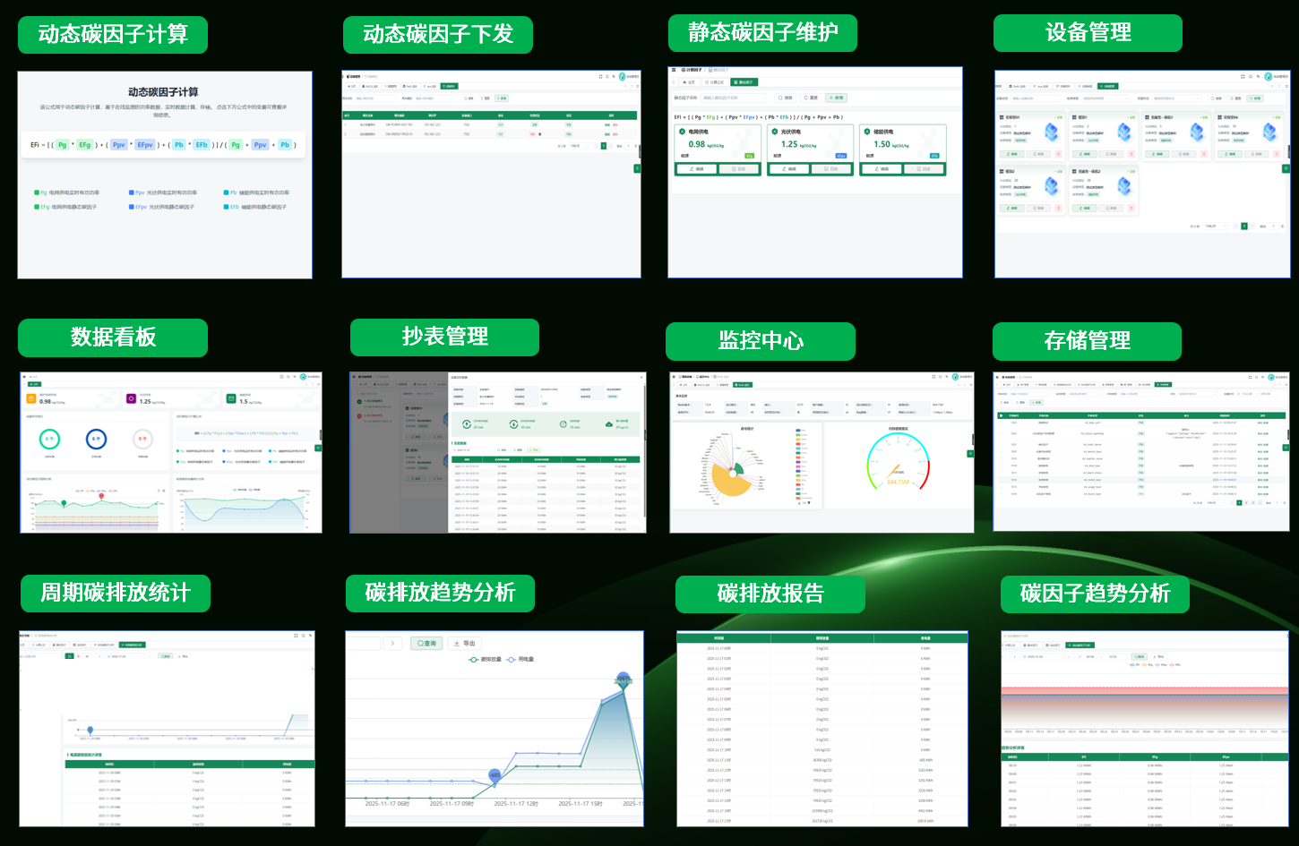 在计量机制上,平台创新性融合“静态因子兜底+动态因子主导”双重驱动:常态精准、异常兜底,辅以全流程因子管控与数据校验,确保可追溯,打破“重核算、轻管控”,为碳核查与交易提供可靠支撑。